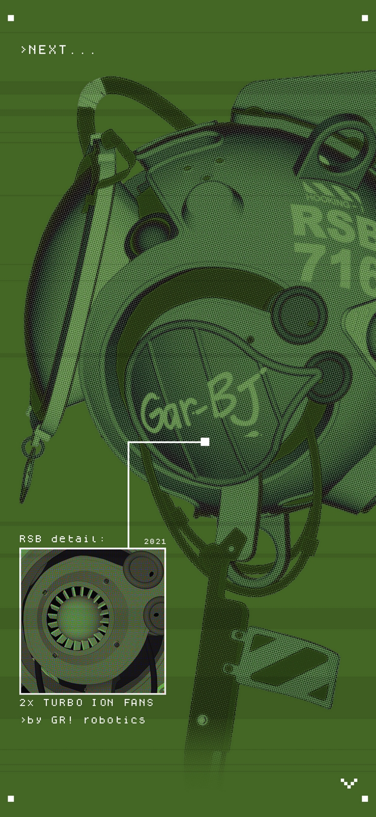 Qui potrete scoprire qualcosa in più della lore del fumetto attraverso le info-schede e il mecha-design 3D di alcuni mezzi e personaggi.